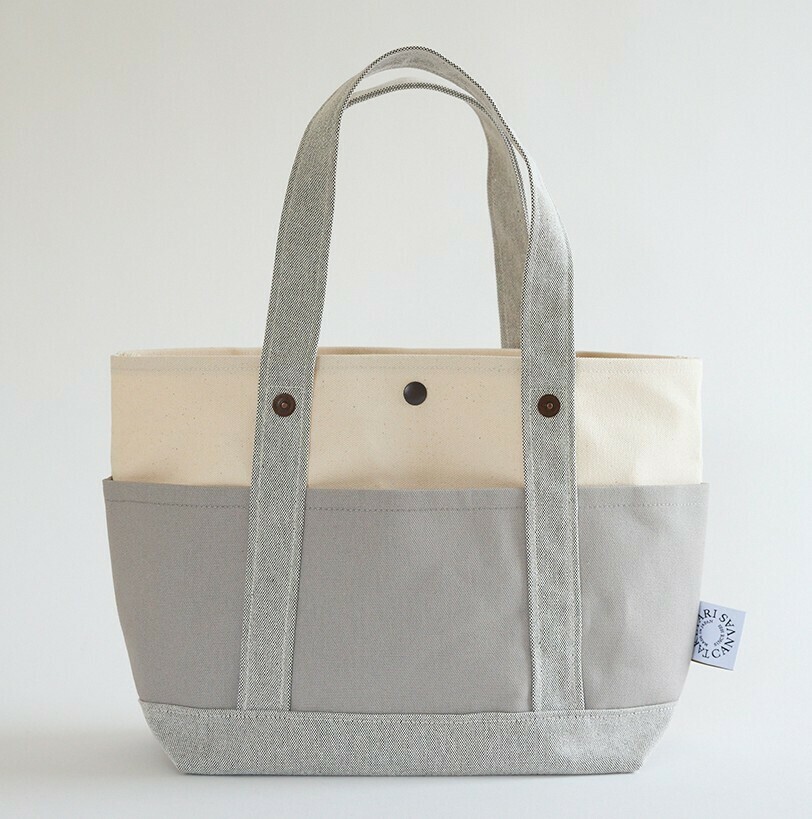 どんな時期や場面にも合うオールラウンダーなトートバッグ。高い実用性をもち、シンプルながらも目を惹くデザインからメディアに何度も掲載される人気商品です。8号帆布を使用。14cmのマチがあり、容量たっぷり。バッグの内外にポケットを用意しているため、普段使いに便利です。3スポット達成賞 ※賞品は選べません