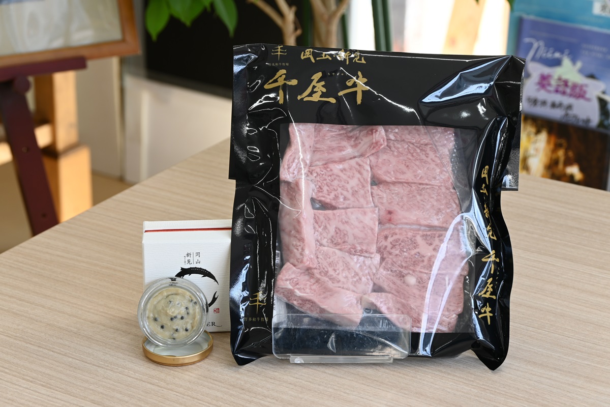 日本最古の蔓牛をルーツとする希少なブランド牛「千屋牛」と、新見産キャビアをたっぷりと練りこんだ特別なキャビアバターの贅沢セットです。いずみ米10kg【1名様】