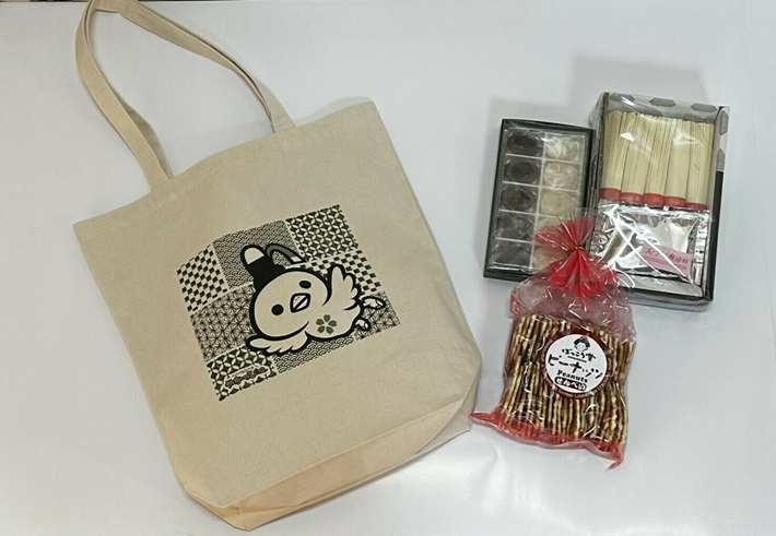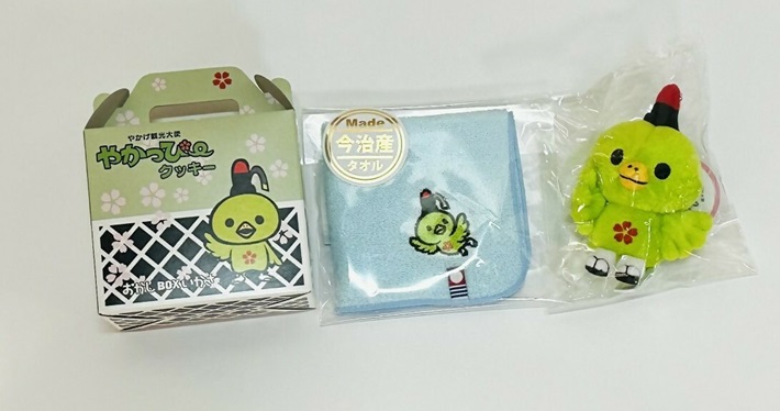 やかげ観光大使のやかっぴー♪やかっぴータオル(今治タオル、ハンカチサイズ)、やかっぴークッキー(プレーン5枚入り)が入っています。笠岡特産品詰め合わせ【1名様】