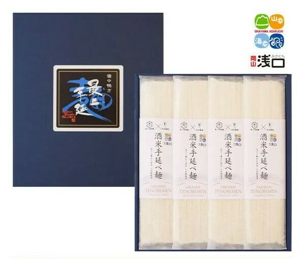 のり、ひじき、かぶとがに煎餅、笠岡ラーメン、ジャム、ドレッシング、マヨネーズが入った笠岡を満喫できるセットです!最上手延素麺(有) 酒米手延べ麺セット【1名様】