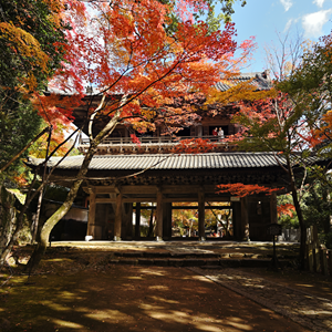関西有数の紅葉の名所として知られ、よし葺屋根の本堂など建物の見事さにも目を奪われます。