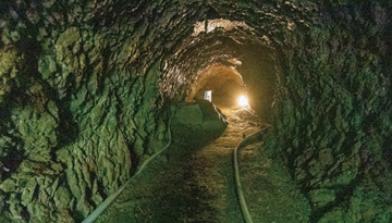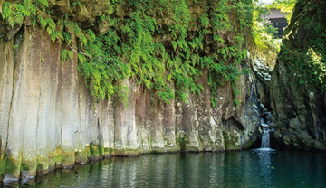 溶岩が冷えて縮んだ際に六角形の柱状に割れ目が入ってできた見事な柱状節理が広がっている。