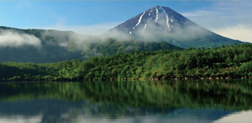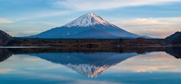 北側から見る富士山は手前に側火山の「大室山」を配しており「子抱き富士」とも呼ばれている。