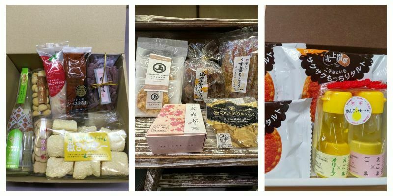 ・左から順に弘前市:シードルと秋のお菓子セット ※お酒を含む