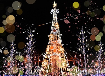 最上川ふるさと総合公園に、冬だけ現れる幻想的な“光の庭園”。音楽とシンクロして輝く高さ7.5mのツリーや光の花々に導かれながら、まるでひとつの物語の中を歩くような体験を楽しめます。クリスマス・正月限定演出もお楽しみに!