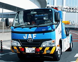 JAFの出動後は、ロードサービスカーの「現在地」や「到着時間」も確認できるので、安心してお待ちいただけます。