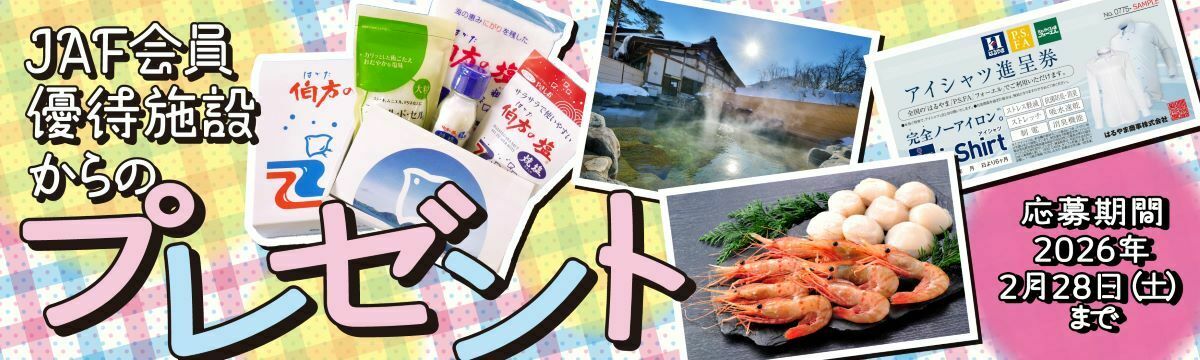 2026年JAF Mate冬号 抽選で当たる!JAF会員優待施設からのプレゼント
