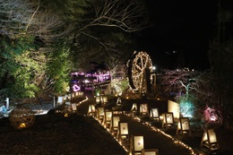 亀岡の冬の町おこしとして始まった「京都丹波夢ナリエ」は、明智光秀ゆかりの谷性寺(こくしょうじ)門前の庭園「ききょうの里」で開催されます。幻想的な竹林のライトアップやイルミネーション、絵行燈が織りなす夢空間が広がり、歴史と自然が調和した幻想的なひとときを楽しめます。会場には無料駐車場が50台分用意されており、クルマでの来場も安心です。地域の魅力を再発見できる絶好のイベントです。