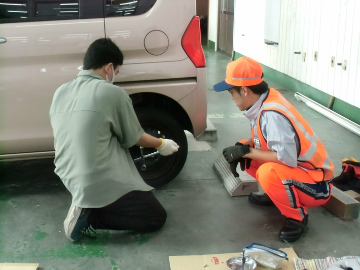車両点検やタイヤ交換に挑戦してもらいました♪