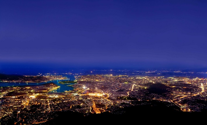 標高622mの皿倉山頂からは、視野角度200度という大パノラマで北九州市内外を一望できます。また、海に沈む夕日から夜景への移り変わる様や、まるで飛行機から眺めているような夜景は感動し、多くの人の心を動かします。帆柱自然公園の四季を楽しむ行楽や自然散策や新しいデートスポットとしても人気を集めている皿倉山頂からの夜景など、楽しみ方はさまざまです。お越しの際は、便利な「帆柱ケーブル」のケーブルカーとスロープカーをご利用ください。