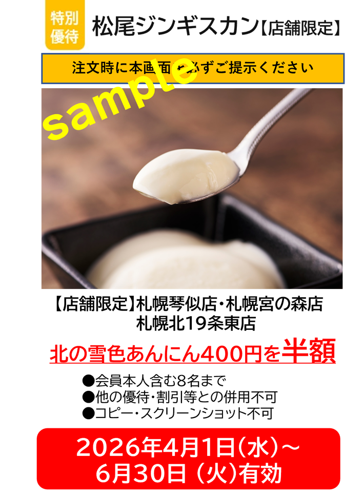 札幌琴似店・札幌宮の森店・札幌北19条東店限定