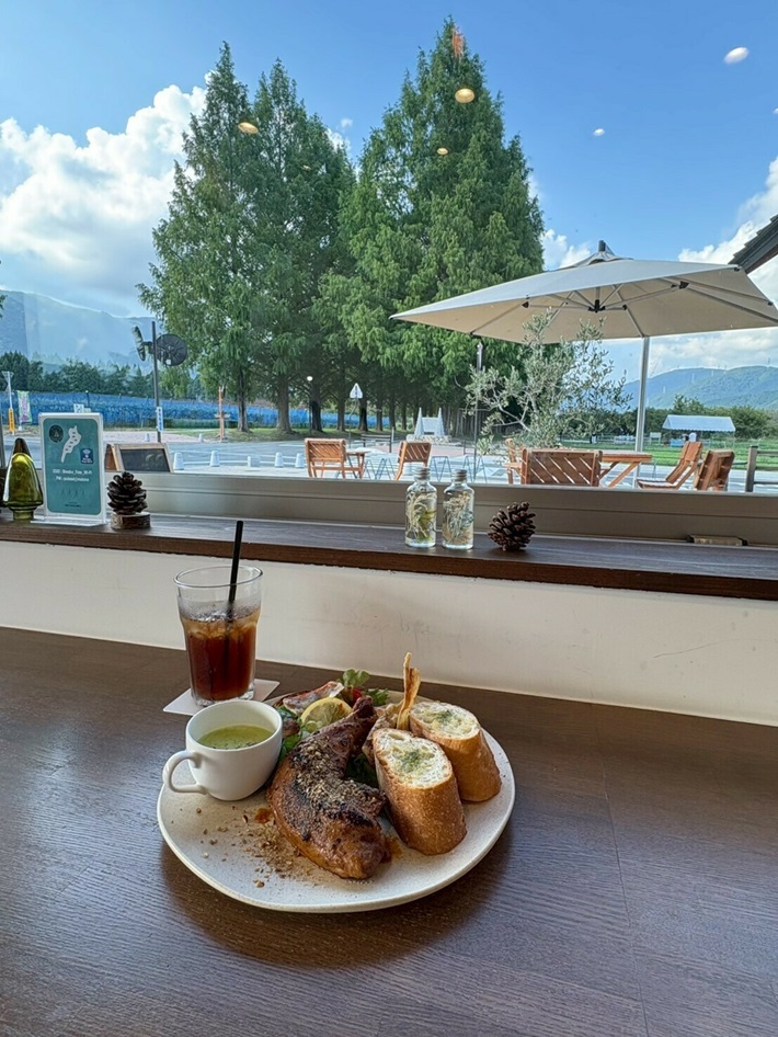 メタセコイア並木を一望できる店内やテラス席にて、地元の食材や旬の果物をたっぷり使用したお食事やスイーツをお楽しみいただけます。