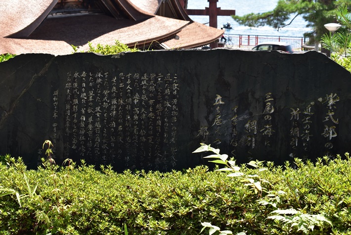 駐車場側にある石段をあがると、紫式部が越前の国司として赴任する父に従ってこの地を通った時に詠んだ歌の歌碑があります。