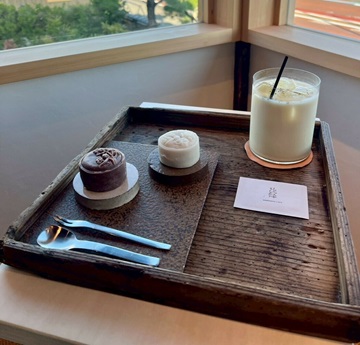 滋賀羽二重餅粉使用の「水晶月餅」とびわこ牛乳を使用した「ミルクプリン」は、思わず写真が撮りたくなる形です。
