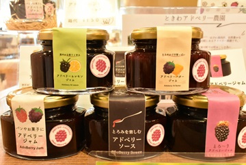 高島市の特産品「アドベリー」を使用した加工品が購入できます。生果実は1~2日で痛み、日持ちがしないため、市場に出回ることが少ないことから「幻の果実」と言われています。