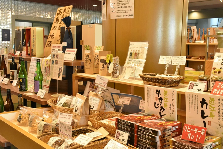 高島市を代表する高島ちぢみ、高島帆布、アドベリーや日本酒などの特産品を幅広く取り揃えています。