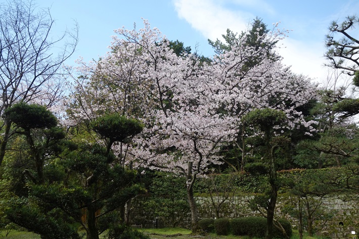 山上境内は数種類の桜で彩られ、神苑のシダレ桜の古木は圧巻です。