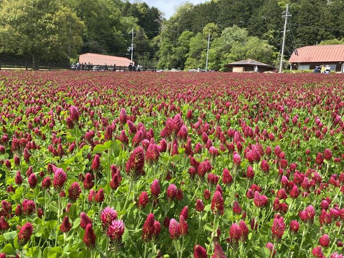 4月下旬から5月中旬にかけて、赤い花穂のストロベリーキャンドルが牧場広場一面に咲き、草原をやさしく彩ります。